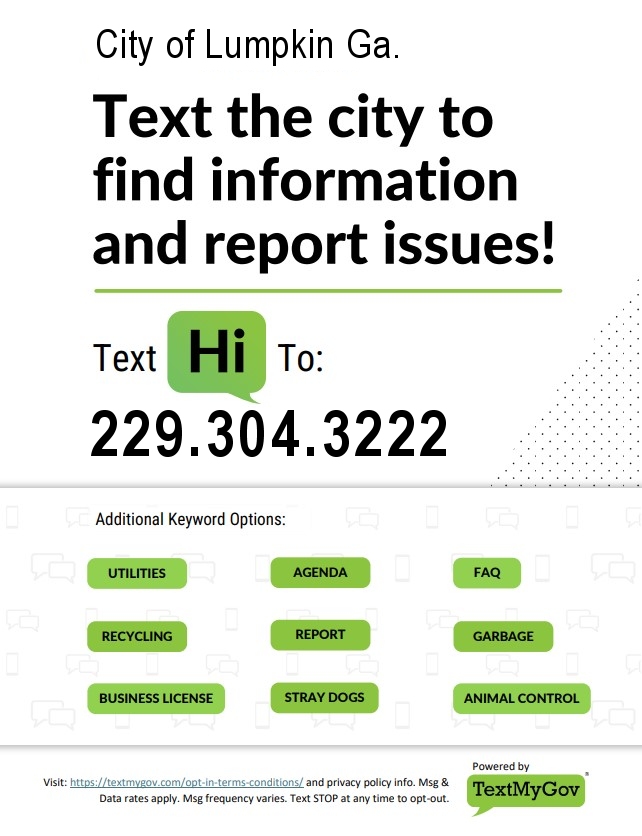 text “Hi” to the City of Lumpkin at: (229) 304-3222